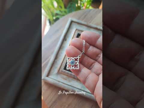 夏に映えるブルートパーズ 透かし模様 シルバーネックレス