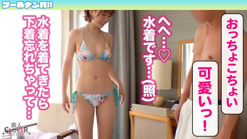 【プールで遊ぶ水着女子たちをガチナンパ→ハメハメしちゃう企画。】真夏のプール場で水着女子を捜索!早速美女を発見したのでナンパすると、追加でお友達の女の子が2人釣れましたwwとゆーことで今回知り合えた子達は、『ゆいちゃん、ことのちゃん、あんちゃん(21歳)』の仲良し3人組です♪漏れなく全員カワいい!刺激的なほど水着が似合ってて眼福眼福☆中でも気になったのはあんちゃんで、どうやら3人の中で一番エロいみたいです…!奢りをエサに分断しあんちゃんとランチタイム♪好みの異性はなんとスタッフという事で、昼間から熱っぽい視線を送られました…!なら期待に応えないとですね♪あんちゃんを連れホテルへ急行しちゃいます!早速服を脱がせると下着…ではなく、水着登場!?下着の代わりに水着を着て1日を過ごす予定だったと語るあんちゃん…ちょっと謎ですがそんな所もかわいい!!!というかエロくないですか~!?だって水着姿でヤりたいって事ですもんね??テンション上がりますよっ!なのでお望み通り、水着姿のままレッツSEX☆好みのスタッフに生ハメされてゴキゲンなあんちゃん♪当然スタッフも美味しい思いをたっぷりして、中出し&顔射をしてあげました!※この作品は成人にコスプレをさせています。※この作品の出演者は全て19歳以上の成人です。(All performers in this work are adults over the age of 19.)