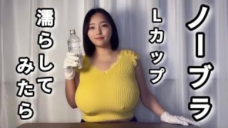 ポロリ 【ノーブラLカップOL】スケスケポロリ….ノーブラおっぱいを濡らしてみたら透け過ぎて大変でした….